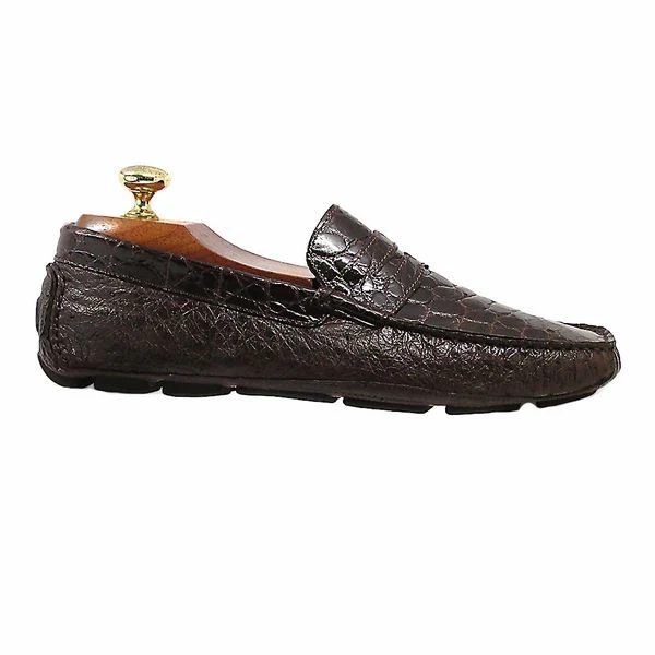 Soft Ostrich leg skin leather combined with Crocodile skin leather styled in a slip-on loafer. Hand crafted in Italy. Includes a cushioned foot bed and flexible leather sole. From the NEW exclusive Calzoleria Toscana collection. Skillfully crafted hand stitched loafer. Made of superior grade skin.