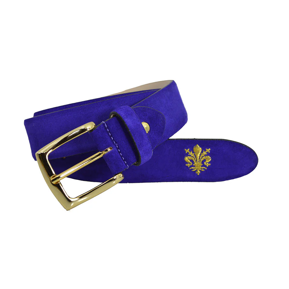Calzoleria Toscana has become one of the leaders in exceptional men's footwear. Style 4983 is now available in more colors for your selection. Also known as a "smoking shoe" this style is timeless. All suede with leather piping and embroidered contrast stitched crest on vamp. Mating belts available. Fits true to size. Made In Italy.